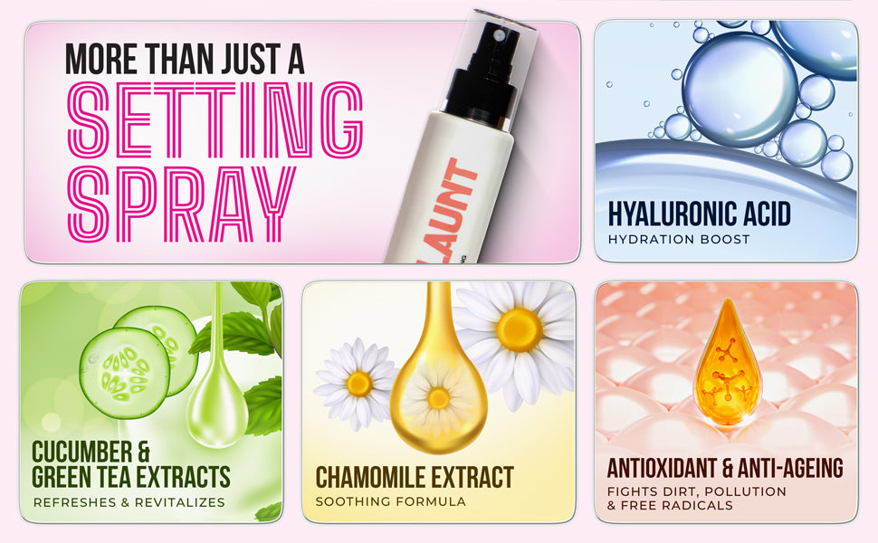 • Fix & Flaunt: Locks in the moisture and helps the makeup & Skincare stay all day long.